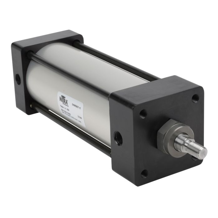 NITRA pneumatic air cylinder, NFPA tie rod, 2-1/2in bore, 5in stroke, double acting, magnetic piston, tapped end caps mount.