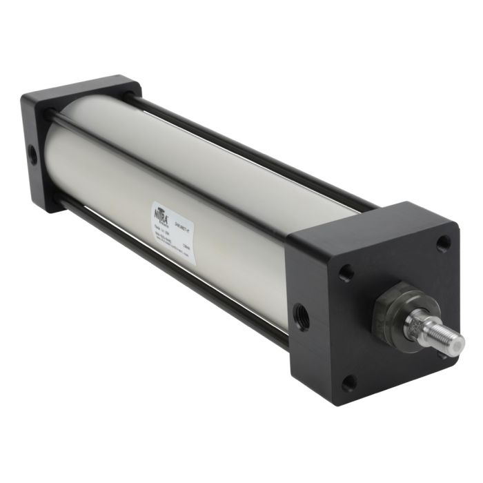 NITRA pneumatic air cylinder, NFPA tie rod, 2-1/2in bore, 10in stroke, double acting, magnetic piston, tapped end caps mount.