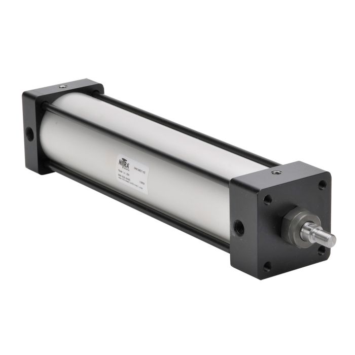 NITRA pneumatic air cylinder, NFPA tie rod, 2-1/2in bore, 10in stroke, double acting, magnetic piston, front and rear adjustable cushions, tapped end caps mount.