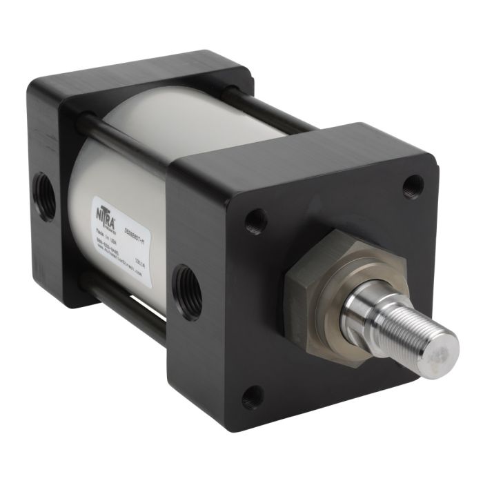 NITRA pneumatic air cylinder, NFPA tie rod, 3-1/4in bore, 2in stroke, double acting, magnetic piston, tapped end caps mount.