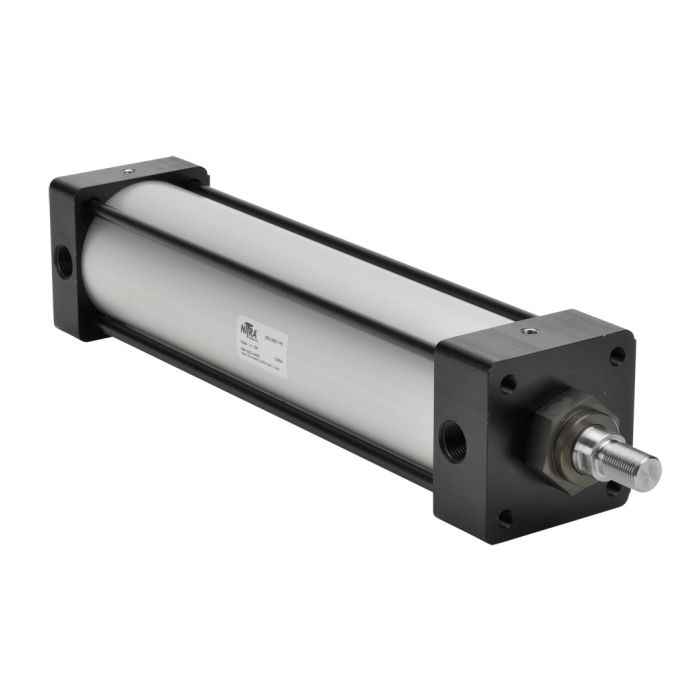 NITRA pneumatic air cylinder, NFPA tie rod, 3-1/4in bore, 12in stroke, double acting, magnetic piston, front and rear adjustable cushions, tapped end caps mount.