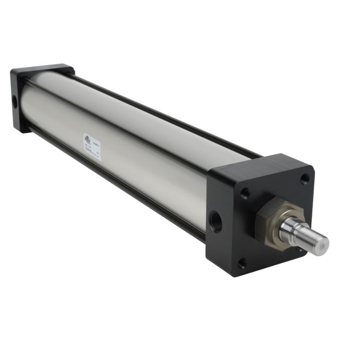 NITRA pneumatic air cylinder, NFPA tie rod, 3-1/4in bore, 18in stroke, double acting, magnetic piston, tapped end caps mount.