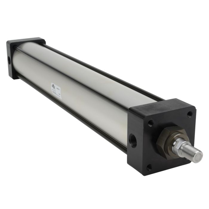 NITRA pneumatic air cylinder, NFPA tie rod, 3-1/4in bore, 20in stroke, double acting, magnetic piston, tapped end caps mount.