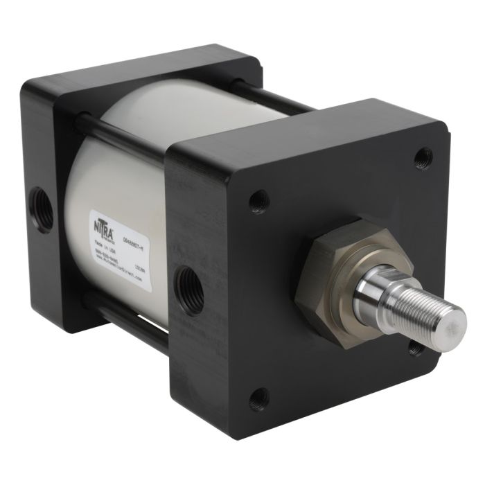 NITRA pneumatic air cylinder, NFPA tie rod, 4in bore, 2in stroke, double acting, magnetic piston, tapped end caps mount.