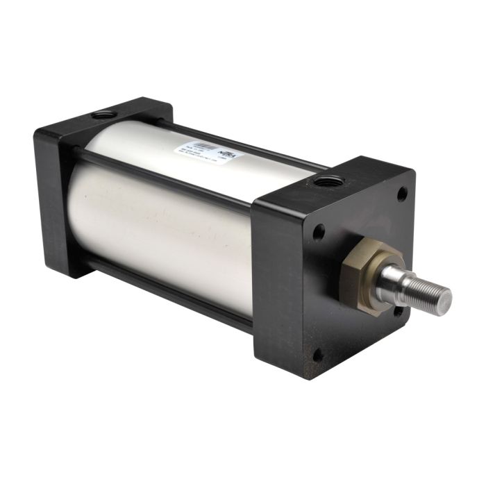 NITRA pneumatic air cylinder, NFPA tie rod, 4in bore, 6in stroke, double acting, magnetic piston, tapped end caps mount.