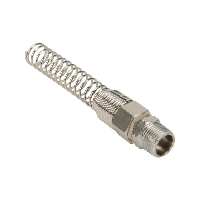 NITRA pneumatic threaded fitting, hose swivel, nickel-plated brass body, 3/8in inside diameter to 3/8in male NPT.