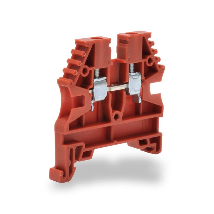 Konnect-It single-level terminal block, 26-12 AWG, red, 20A, 600V rated (UL). Works with jumpers KN-2J12, KN-3J12, KN-4J12 and KN-10J12. 100 pieces per package.
