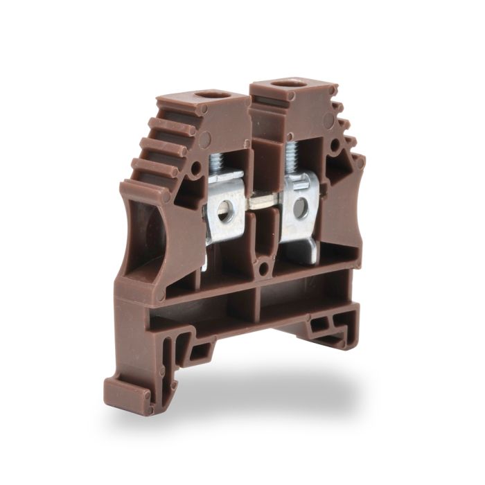 Konnect-It single-level terminal block, 26-8 AWG, brown, 50A, 300V rated (UL). Works with jumpers KN-2J8, KN-3J8, KN-4J8 and KN-10J8. 100 pieces per package.