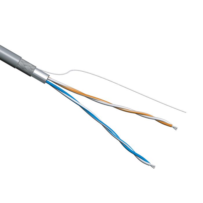 Southwire Type CM/CL2, AWM Style 2919 RS-422/RS-232 low capacitance data cable, 2 twisted pairs, 24 AWG, foam polyethylene conductor insulation material, overall foil and braid shielded, PVC jacket, gray, cut to length.