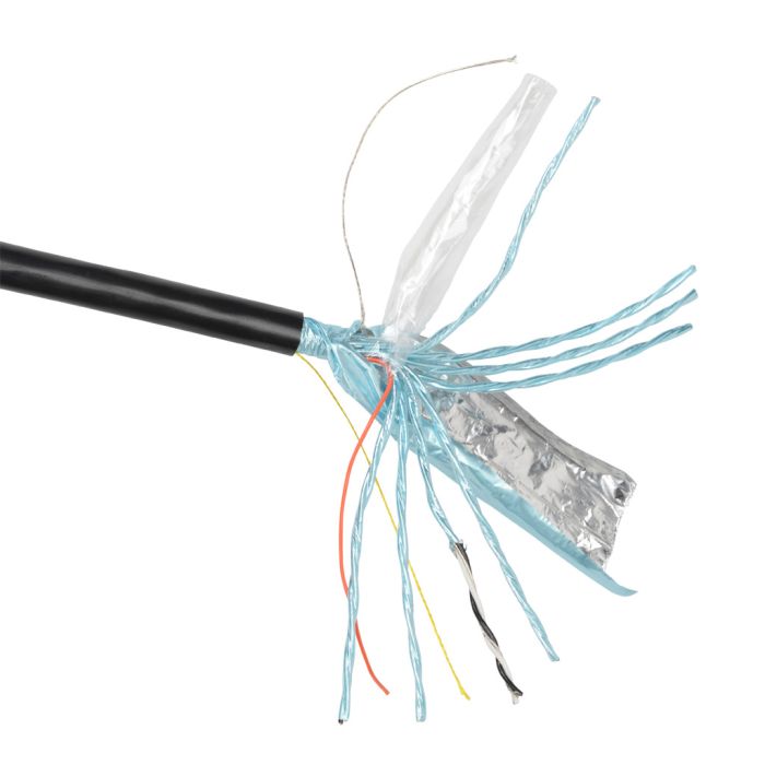 Southwire instrumentation cable, Type PLTC , Type ITC, 300V, 8 twisted pairs, 16 AWG, PVC conductor insulation material, black and white numbered pairs, individual and overall shielded, PVC jacket, black, cut to length.