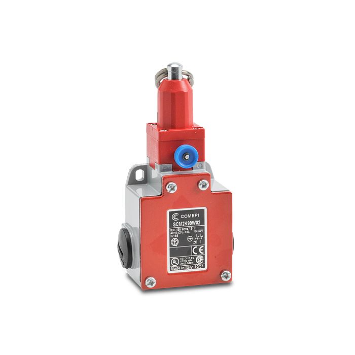 Comepi safety switch, cable-pull interlock, with reset, protection to 25 meters, 2 N.C. contacts with slow action, 60mm wide.