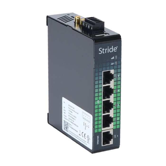 STRIDE SiteLink industrial VPN router, wired + 4G LTE AT&T connectivity, (5) RJ45 Gigabit ports.