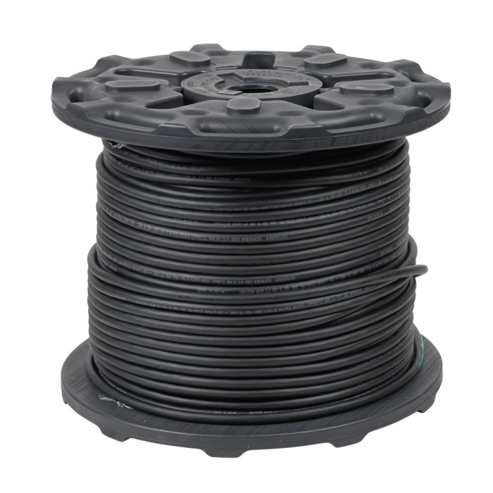 Flexible portable cord, type SOOW, 600V, 2 conductors, 12 AWG, EPDM thermoset rubber conductor insulation material, black and white, CPE thermoset rubber jacket, black, 250ft reel.