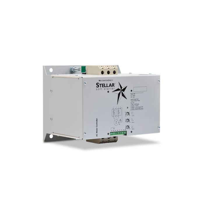 Stellar SR33 series basic reduced voltage soft starter, 97A, 208-230/460 VAC, for 3-phase motors (two phases controlled), rated for 10 starts/hour.