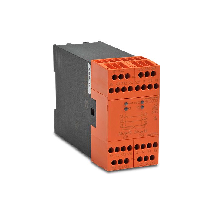 Dold safety relay, light curtain controller, 2-channel, 24 VDC, (2) N.O. safety contact(s), (1) N.C. monitoring contact(s), fixed screw terminals.