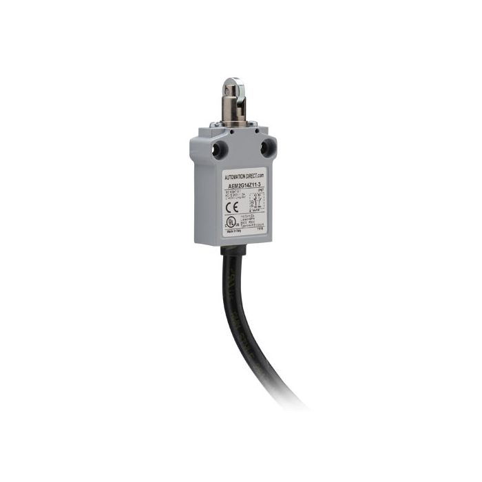Limit switch, metal plunger with metal cross roller, 1 N.O. and 1 N.C. contact with snap action, 35mm wide metal, IP67, 3-meter cable exit.