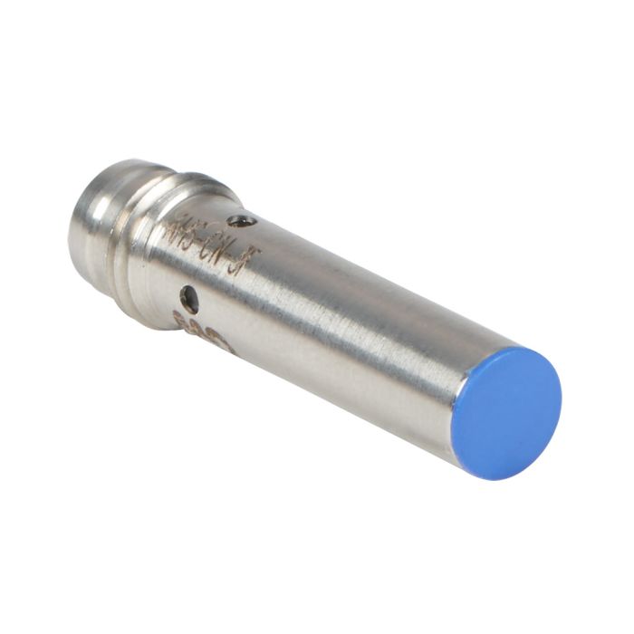 Inductive proximity sensor, 6.5 mm diameter, 29.4mm body length, tubular, stainless steel housing, NPN, 2mm sensing distance, shielded, N.C. output, 3-pin M8 quick-disconnect.