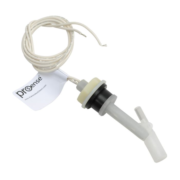 ProSense float level switch, side-mount, 3.31-inch insertion length, polypropylene float, polypropylene stem, 5/8-11 UNC male, SPST, 24-inch lead wires.