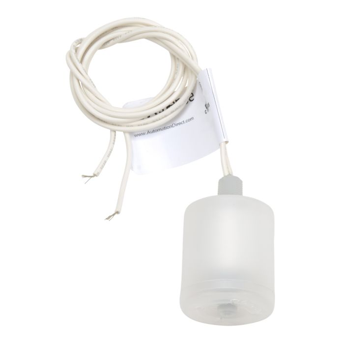 ProSense float level switch, top-mount, 1.44-inch diameter, polypropylene slosh shield, float, and stem, 1/8 inch NPT male, SPST, 24-inch lead wires.
