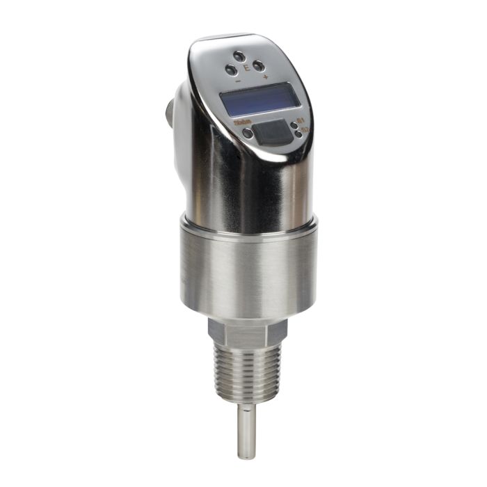 ProSense digital temperature sensor, 1/2in male NPT process connection, 30mm insertion length, -58 to 302 deg F, output: switch PNP, N.O./N.C. selectable, output 2: switch PNP, N.O./N.C. selectable, 4-digit display.