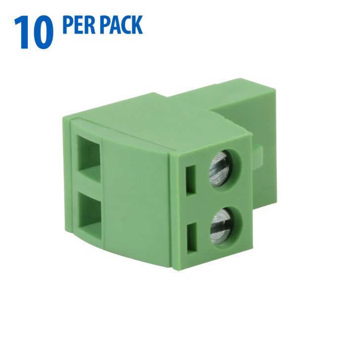 DINnector terminal plug, 2-pole, 22-14 AWG, green, 12A, 300V rated (UL), Top wire entry with terminal screw 90 degrees from entry, 10 pieces per package.