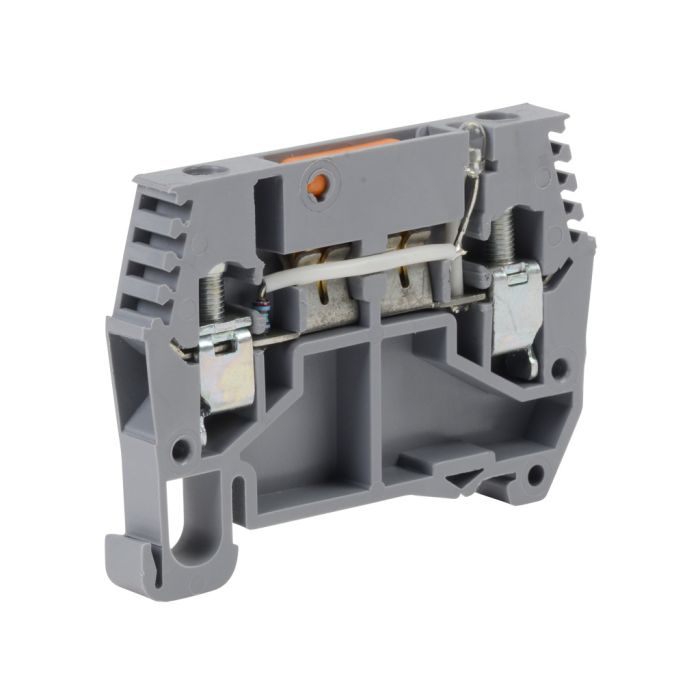 DINnector disconnect terminal block, with 12V LED, 24-12 AWG, gray, 20A, 300V rated (UL), 8.2mm wide, with knife blade. 10 pieces per package.