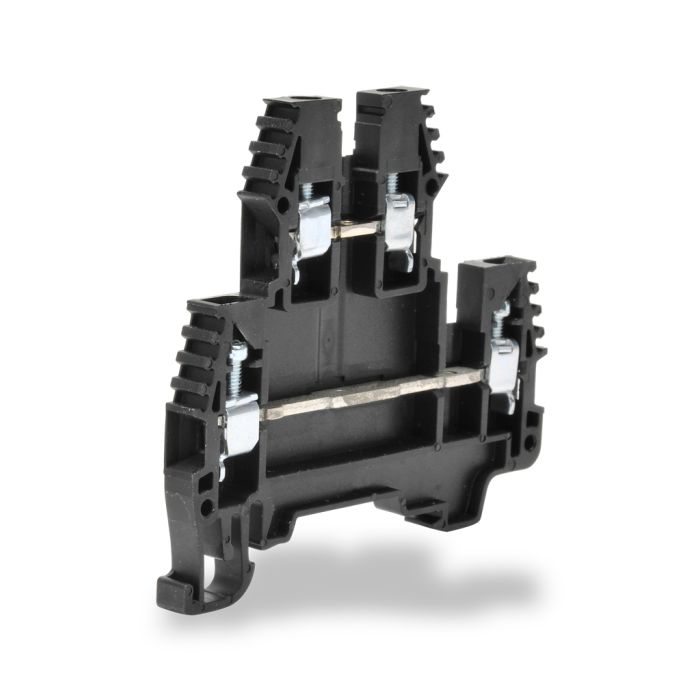 Konnect-It double-level terminal block, 26-12 AWG, black, 20A, 300V rated (UL). 100 pieces per package.