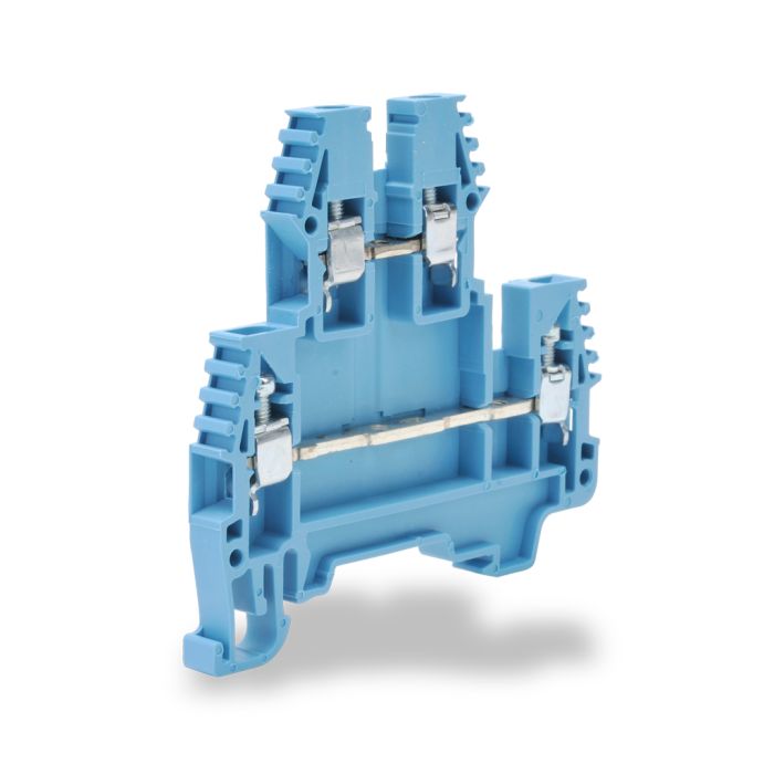Konnect-It double-level terminal block, 26-12 AWG, blue, 20A, 300V rated (UL). 100 pieces per package.