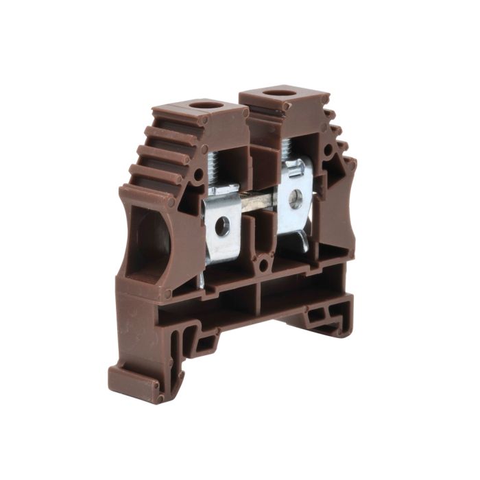 Konnect-It single-level terminal block, accepts wire size 16 - 6 AWG, brown, 65A, 300V rated (UL), 35mm DIN rail mount. Package of 25. For use with jumpers KN-2J6, KN-3J6, KN-4J6 and KN-10J6.