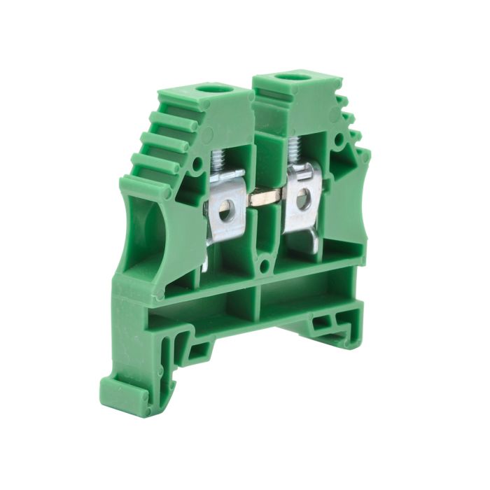Konnect-It single-level terminal block, accepts wire size 26 - 8 AWG, green, 50A, 300V rated (UL), 35mm DIN rail mount. Package of 25. For use with jumpers KN-2J8, KN-3J8, KN-4J8 and KN-10J8.