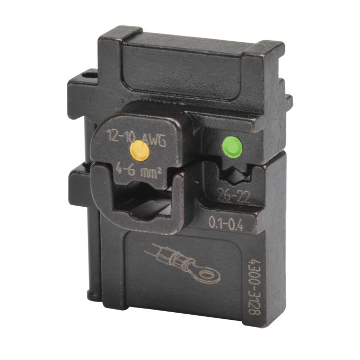 DN-CT series die set, for use with 26-22 AWG green and 12-10 AWG yellow insulated terminals and splices. Purchase DN-CT-HDL handle separately.