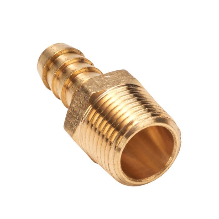 HydroMode threaded fitting, hose barb, lead-free brass body, lead-free brass threads, (1) 3/8in hose to (1) 3/8in male NPT connection(s). Package of 3.