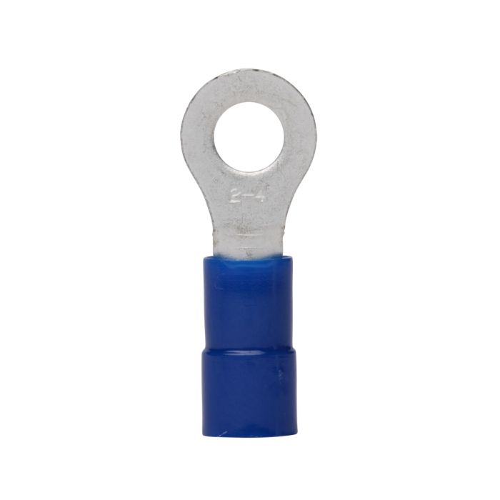 Z+F terminal, ring, 16-14 AWG, blue, PVC insulated, M4 stud. Package of 100.